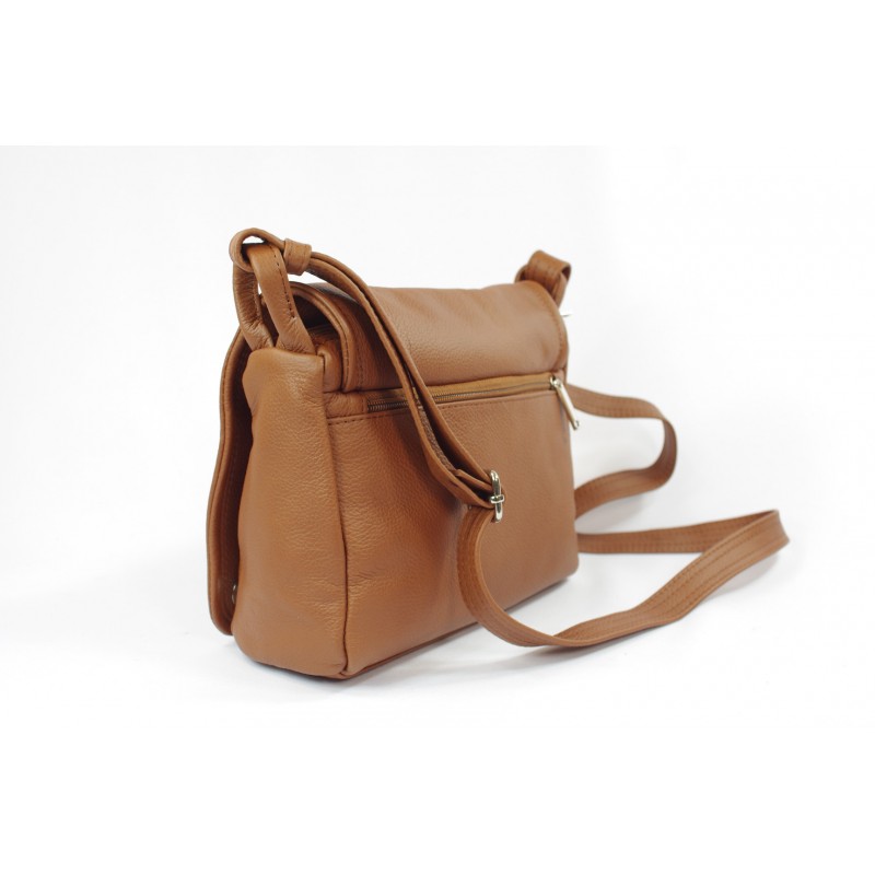 Nieduża torebka damska firmy EVER. Wykonana z najwyższej jakości naturalnej skóry. Klapa zapinana na dwa magnesy, pod nią dwie osobne komory zapinane na zamki błyskawiczne. Wewnątrz kieszonka na smartfon i zapinana na zamek kieszeń na dokumenty. Z tyłu torby szeroka kieszeń zapinana na zamek. Pasek z regulacją długości.
