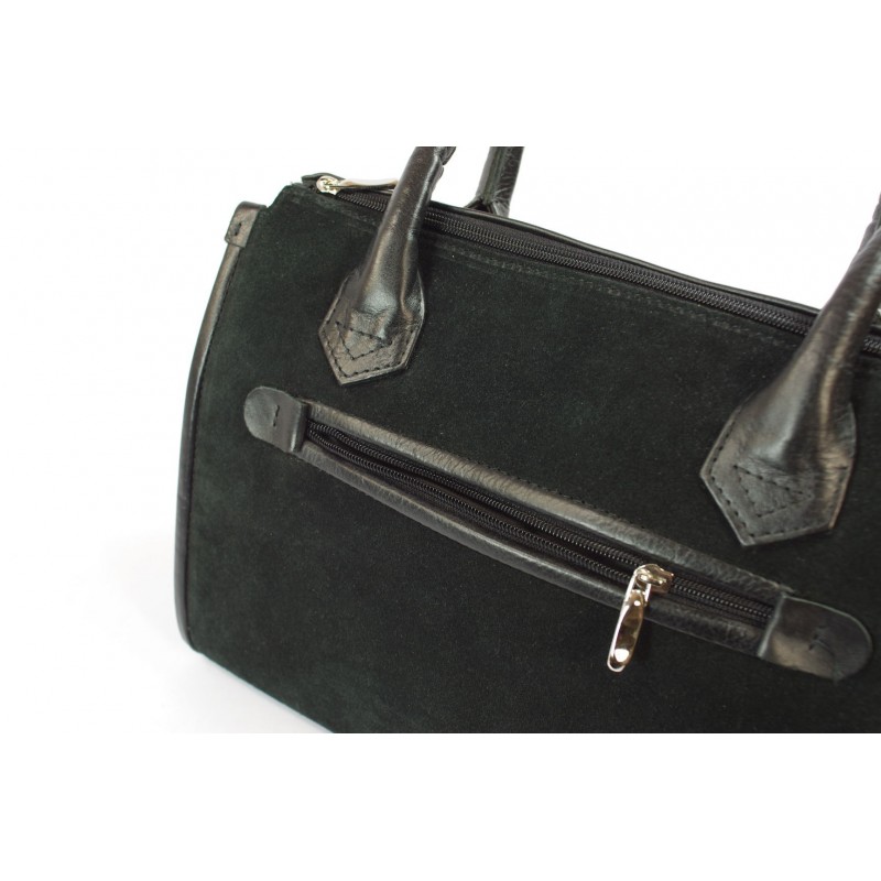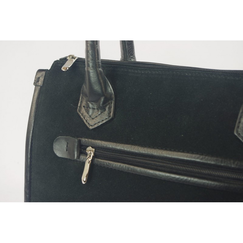 Torebka firmy EVER wykonana z wysokiej jakości skóry naturalnej licowej w połączenie z zamszem. Zapinana na zamek błyskawiczny, wewnątrz duża komora przedzielona przegrodą, kieszonki na telefon i dokumenty. Dodatkowo jedna zewnętrzna kieszeń zapinana na zamek błyskawiczny.